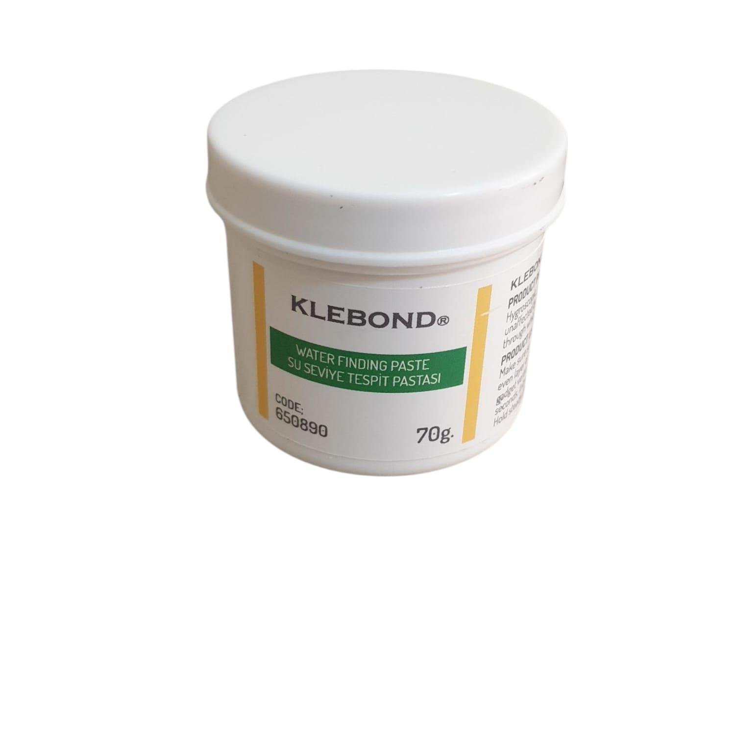 Klebond Su Tespit Pastası Su Bulma Macunu - Water Finding Paste Tanım: Klebond Su Bulma Macunu, yağ, mazot, petrol, benzin, fuel-oil ve kerosen tanklarının dibinde su varlığının tespit edilmesi amaçlı kullanılır. Suya temas eden yeşil renkli macun kırmızıya dönecektir. İskandil metre boyunca gözlenen renk değişimi, suyun derinliğine de işaret edecektir. İçme suyunda kullanmayınız. Ambalaj: 70 gr.